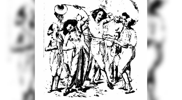 সে-বছর শহর পরিক্রমার সময় চিৎপুর রোডের কাছে এসে সন্ন্যাসীরা পথের ধারেই এক অনুষ্ঠানের আয়োজন করেছিলেন। তবে সে অনুষ্ঠানের মেজাজ যেন একেবারেই ধর্মীয় নয়। গাজন বা চড়কের সন্ন্যাসীদের শিব সাজার রেওয়াজ তো সর্বত্র। এই পুজো তো আসলে শিব ঠাকুরের। তবে ১৮৩৯ সালের এই অনুষ্ঠানে নানা বিচিত্র সাজে সেজেছিলেন সন্ন্যাসীরা। কেউ গণেশ, কেউ কার্তিক। আর সপুত্রক শিব ঠাকুর নানা অঙ্গভঙ্গি করে দর্শকদের মজা দিচ্ছেন। জ্ঞানান্বেষণ পত্রিকার সংবাদদাতা অবশ্য তাঁদের সন্ন্যাসী না বলে ‘সং’ বলেই উল্লেখ করেছেন। বোঝাই যায়, তথাকথিত নিচু শ্রেণির মানুষের এই উৎসবকে মোটেই সম্মানের চোখে দেখছেন না তিনি।