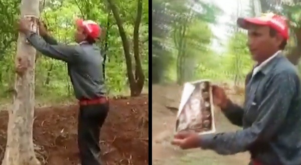 অরণ্যের বুক চিরে চলে গিয়েছে কাঁচা রাস্তা। আর রাস্তার দু-ধারে সারি সারি গাছ। এতে অবাক হওয়ার কিছু নেই। অবাক করা বিষয় হল, প্রতিটা গাছের গায়ে সাঁটানো পোস্টার। না, কোনো প্রতিবাদী স্লোগান লেখা নেই তাতে। তার বদলে আছে কেবল ভগবান শিবের ছবি। বনের গাছগুলোকে বাঁচাতে এমনই অভিনব রাস্তা বেছে নিয়েছেন ছত্তিশগড়ের পরিবেশকর্মী বীরেন্দ্র সিং।