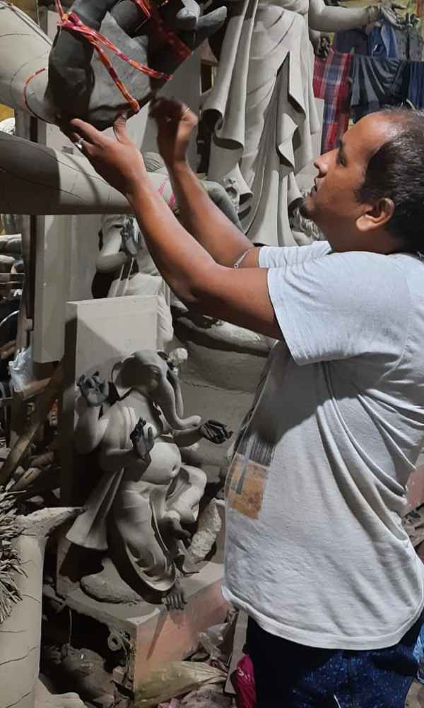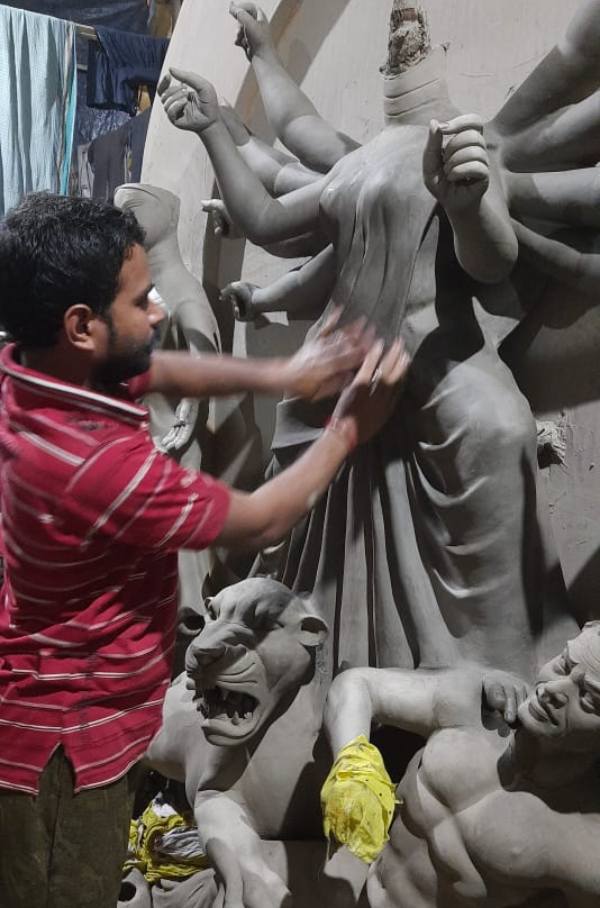 “আমাদের অনেক কারিগরও ছিলেন না। প্রান্তিক জেলা থেকে তাঁরা আসেন আমাদের সঙ্গে কাজ করতে। কলকাতার করোনা পরিস্থিতির কারণে আসতে ভয় পাচ্ছিলেন তাঁরা। কিন্তু এই পরিস্থিতিকে মানিয়ে নিয়েই চলতে হবে, সেটা তাঁরা বুঝেছেন। আগস্টের পর থেকে ধীরে ধীরে কাজে ফিরেছেন তাঁরা”, জানাচ্ছিলেন মৃৎশিল্পী অপূর্ব পাল।