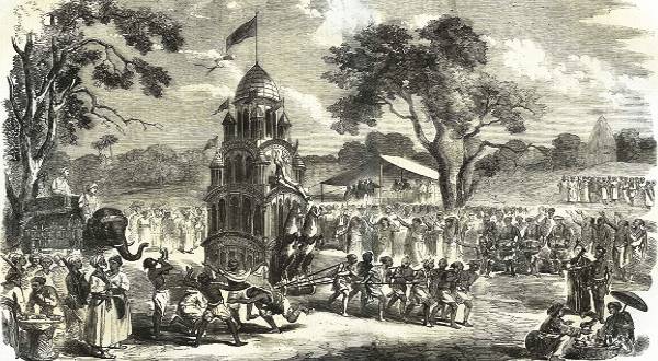 তবে বেজায় ঝড়ঝাপটাও গেছে এই রথের উপর দিয়ে। ১৮৩৫ থেকে ১৮৫৬ র মধ্যে তিনবার রথ তৈরি করতে হয়। একবার রথে একজন গলায় দড়ি দেয়, ফলে রথ অপবিত্র হয়, আর একবার কাঠের রথ আগুনে ভস্মীভূত হয়ে যায়। এখন যে রথ দেখি, সেটা লোহার। মার্টিন বার্ন কোম্পানির তৈরি। ব্রজেন্দ্রনাথ গঙ্গোপাধ্যায়ের সংবাদপত্রে সেকালের কথা বইতে এই মাহেশের রথ নিয়ে নানা অদ্ভুত এবং প্রায় ছবির মত বর্ণনা পাই। একজন মাহেশের মেলায় জুয়া খেলে বউ অবধি বিক্রি করতে গেছিলেন এইখবরও দেখা যায়। তেমনই একটা খবর দিয়ে শেষ করি।